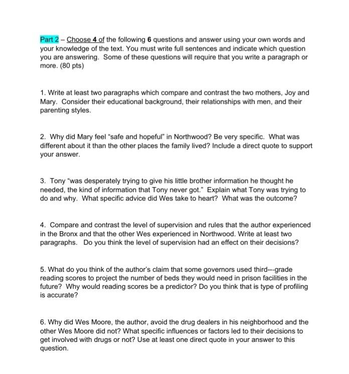 The Other Wes Moore Summary Chapter 5 Gamewornauctions Net